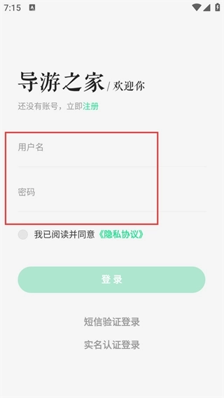进入对应的页面后,选择【账号登录】选项,依次填写【用户名】和【密码】,勾选同意【隐私协议】,最后点击【登录】按钮,即可通过该方式完成登录。