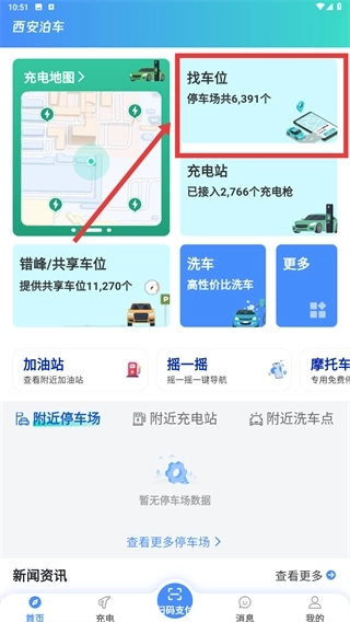 1、在【西安泊车】首页,点击【找车位】模块,就能进入停车场查询页面,查看周边的可用停车资源。