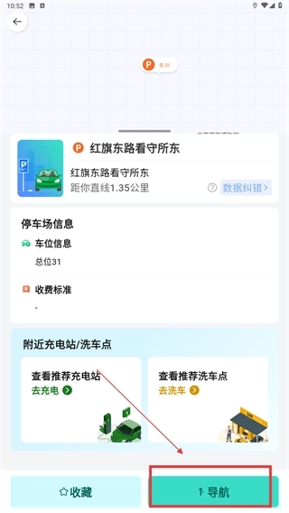 在停车场详情页面,能够查看车位、收费标准等相关信息,点击页面底部的【导航】按钮,就能启动前往该停车场的路线导航功能。