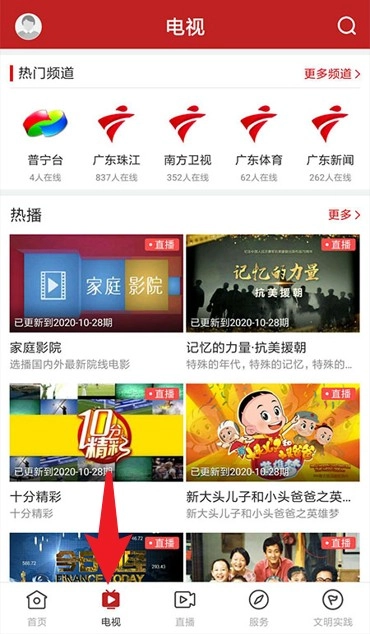 2、点击电视图标即可进入电视专区,在这里可以观看普宁台以及多个卫视的直播频道,还有各类热门节目。