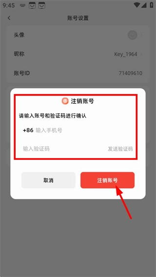 5、在注销账号的弹窗里,输入所需信息后,点击“注销账号”按钮就能完成整个注销流程。
