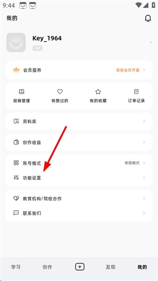 进入我的页面后,点击功能设置选项,即可进入设置页面。