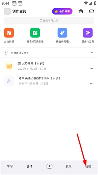 1、在创作空间页面,点击底部导航栏中的“我的”选项,即可进入个人中心页面。