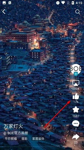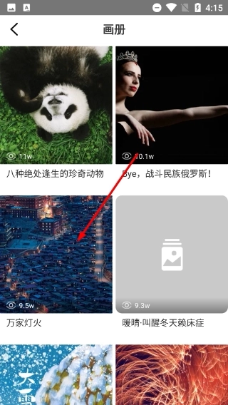 3、在画册列表页面,挑选目标作品(例如【万家灯火】),点击进入该作品的详情页。