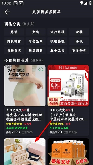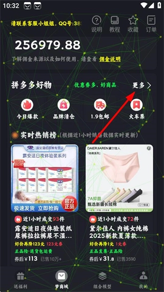 2、进入梦商城页面后,点击拼多多好物右侧的“更多”选项,即可进入拼多多商品的更多页面。