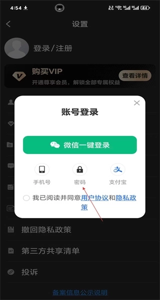 2、进入设置页面后点击登录注册选项,会弹出账号登录窗口,该窗口提供微信一键登录、手机号登录等多种登录方式供用户选择。