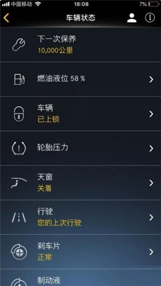 然后就可以在这里看到自家车的状态信息了;
