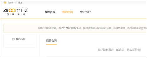 电子合同模板需要从网页端获取PDF格式的,手机版无法操作,得登录自如网页版,在个人账号信息里找到合同文件选项。