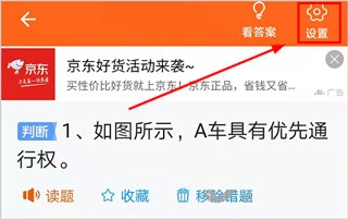 想要在安行驾考里调整字体大小,首先得进入答题界面,然后找到并点击“设置”选项。