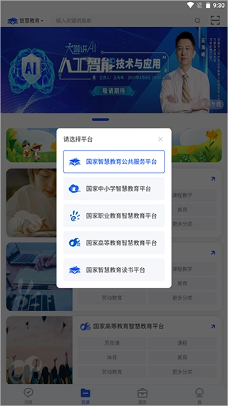 打开本站提供的免费智慧教育应用程序后,第一步是挑选对应的服务平台。