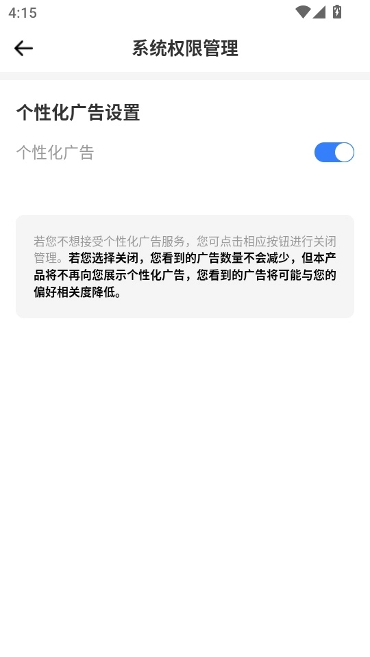 接下来,在“权限管理”功能区找到“个性化广告管理”的入口,点击后继续操作。