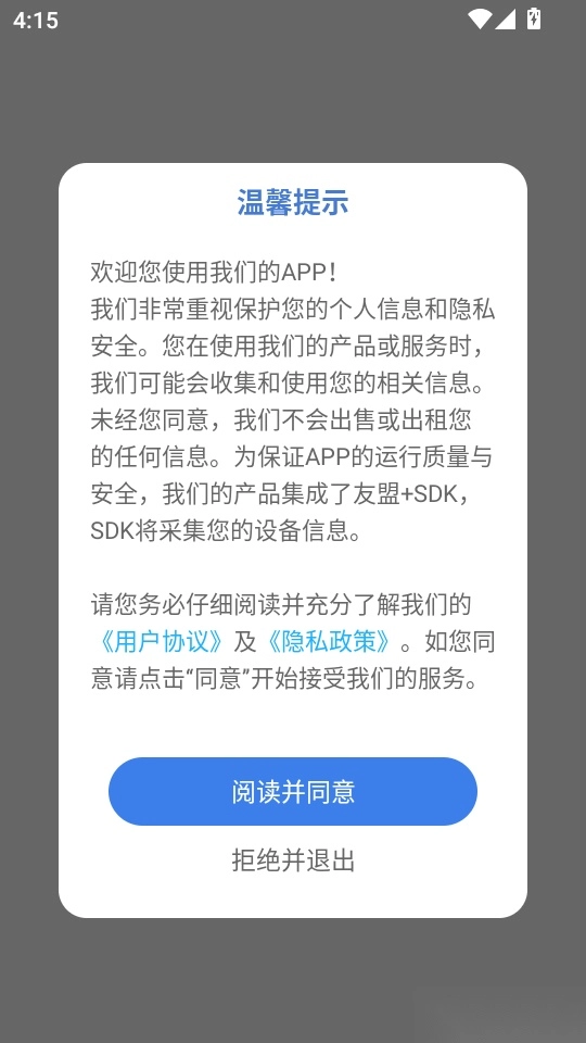 先启动软件查看“温馨提示”内容,确认后点击“阅读并同意”按钮即可进入下一步操作。