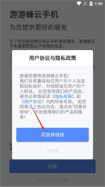 同意游游蜂云手机的用户协议