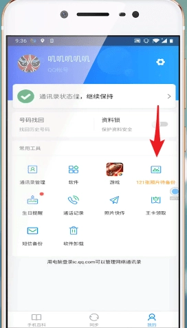 1、打开QQ同步助手,点击我的。