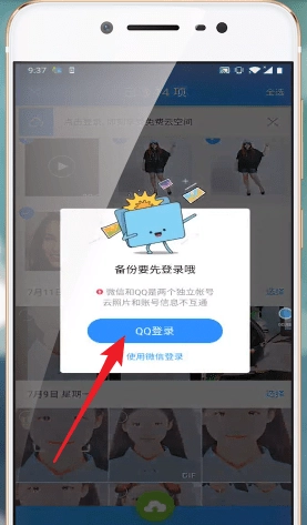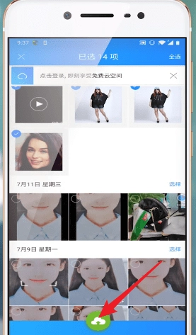 4、接着点击【云】图标完成授权登录,照片即可备份成功。