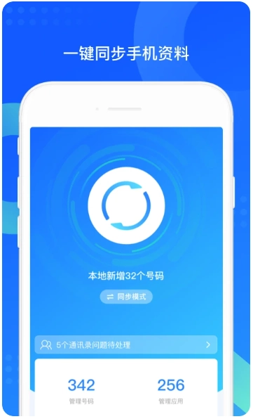 1、备份管理:支持手机通讯录一键上传至云端备份,可随时同步恢复到手机端。