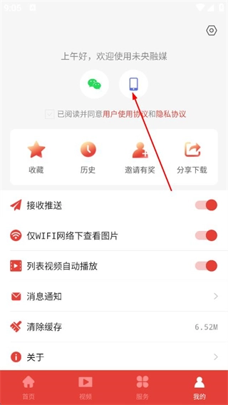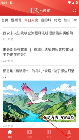 1、在未央融媒首页,点击底部的“我的”选项,即可进入个人中心页面。