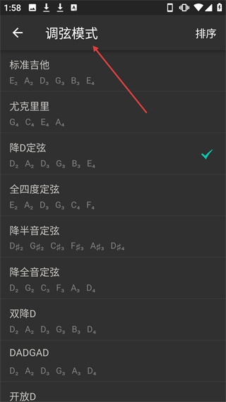 4、进入【调弦模式】列表页面,挑选需要的调弦模式。