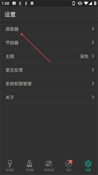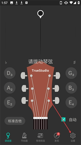 1、在调音器主界面,点击右下角的【设置】按钮。