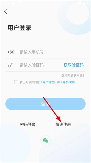 在用户登录界面,点击“快速注册”选项,即可进入用户注册页面。