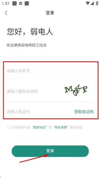 3、在登录页面依次填写手机号、图形验证码和验证码,勾选相关协议后点击登录按钮,即可完成账号登录操作。