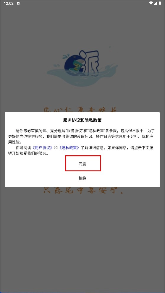 1、当出现服务协议与隐私政策的弹窗时,点击【同意】按钮,完成协议确认后即可继续使用该应用。